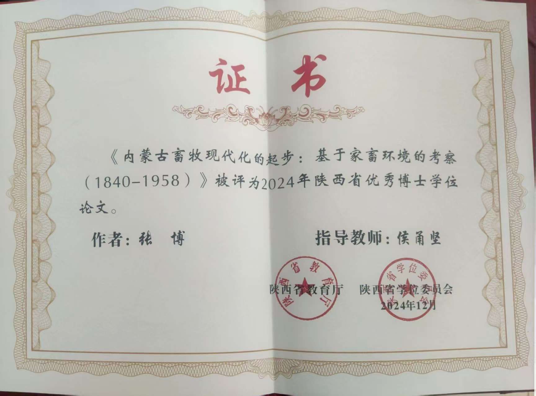 祝贺我院张博同学荣获2024年优秀博士学位论文